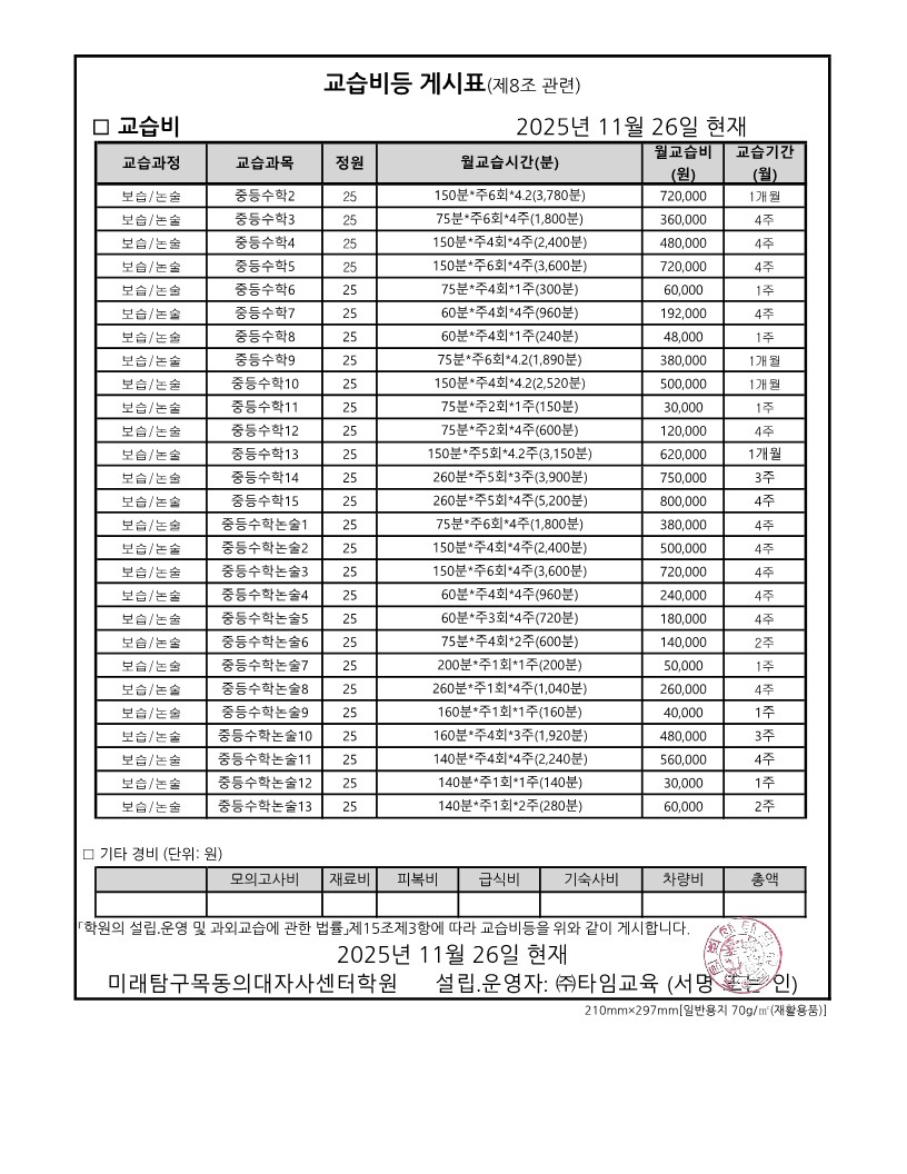 수강료안내